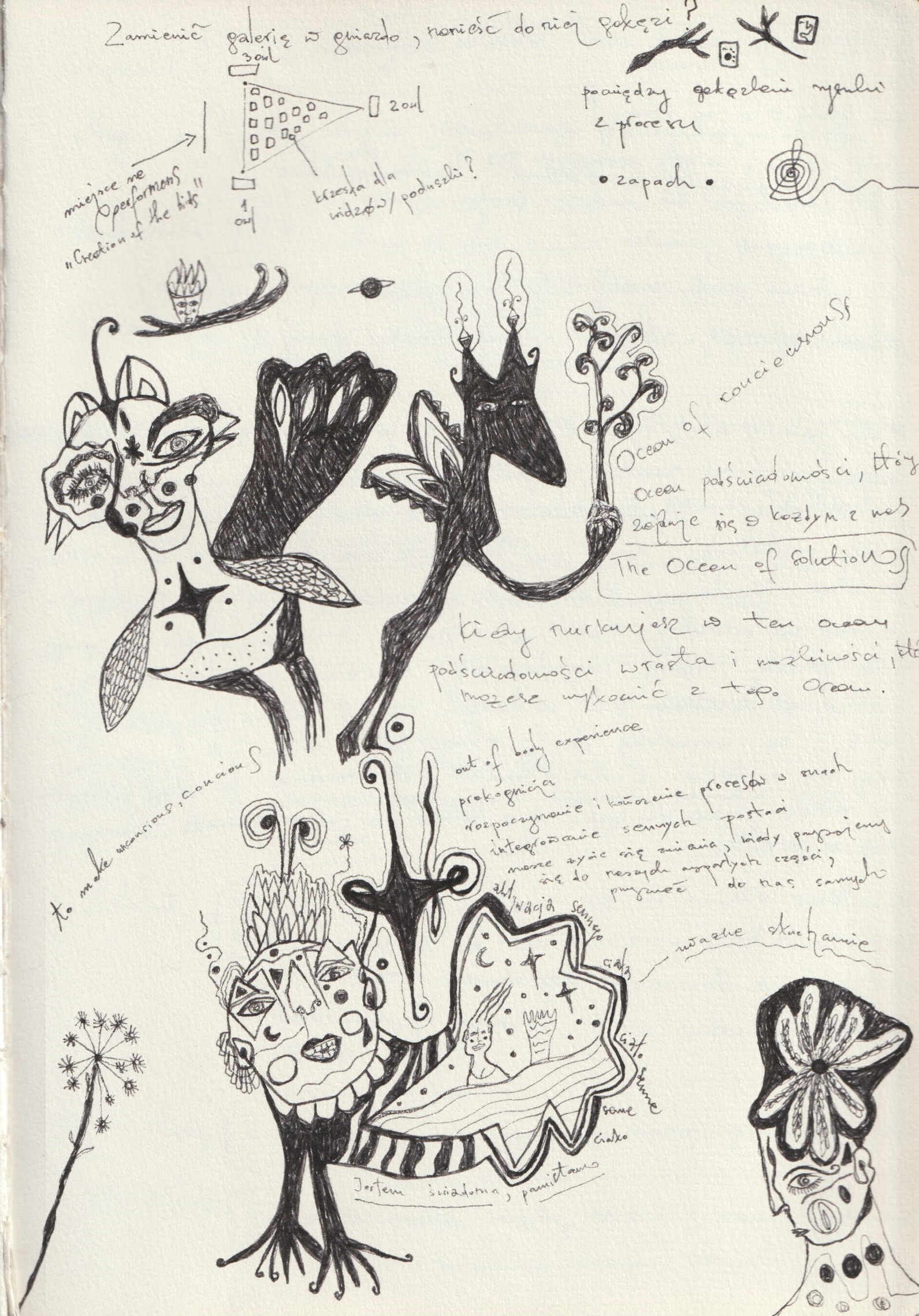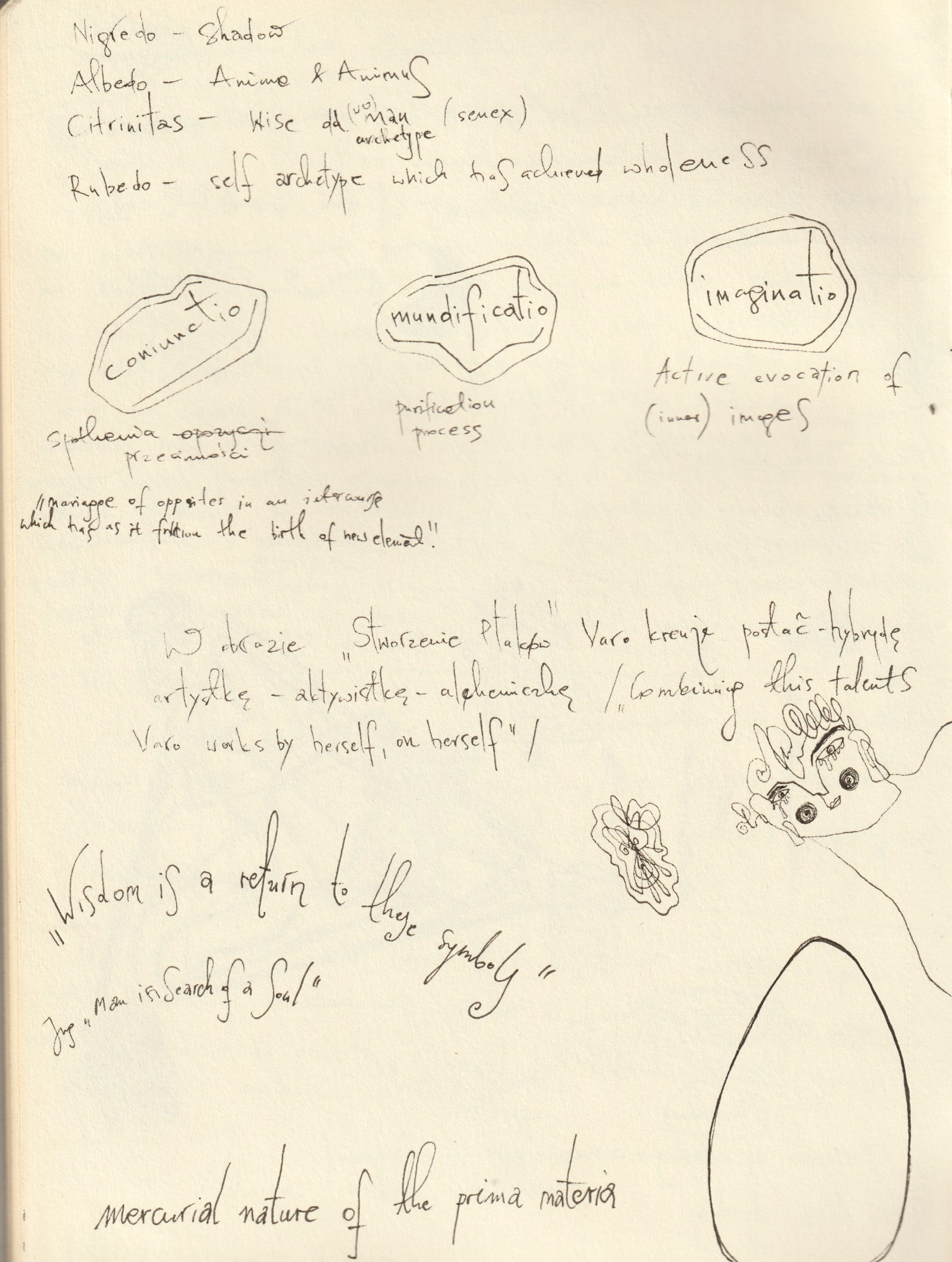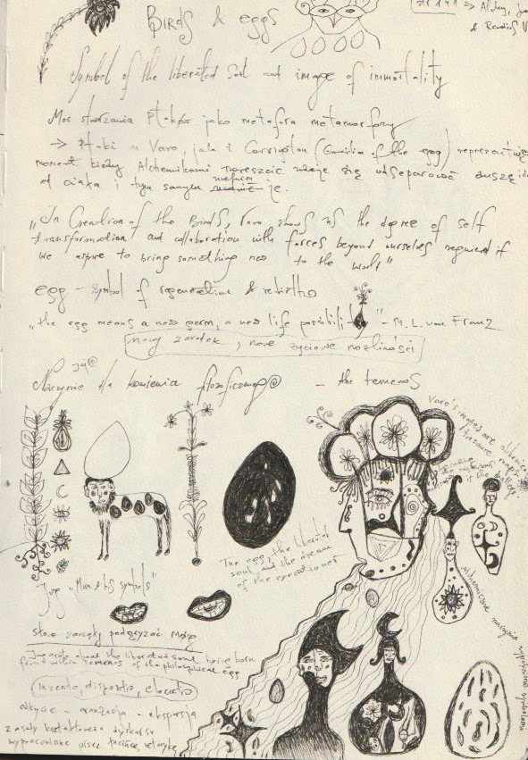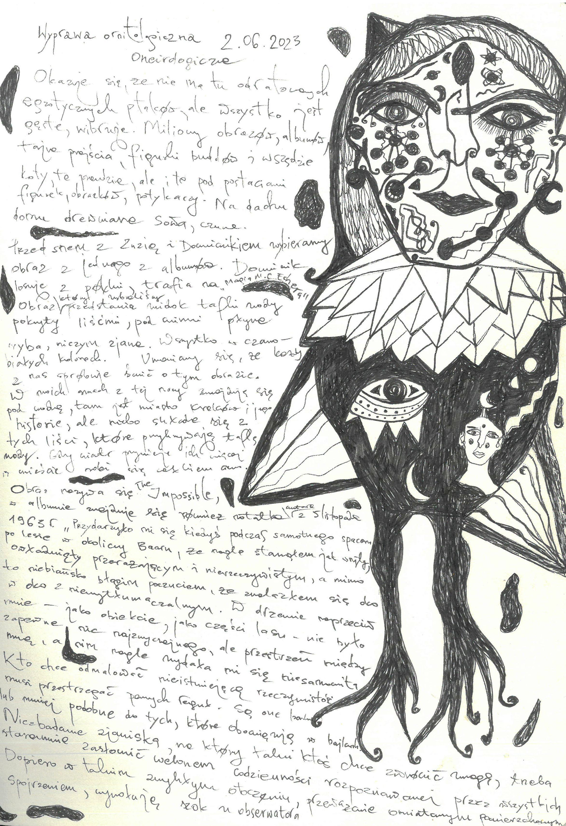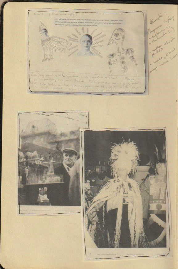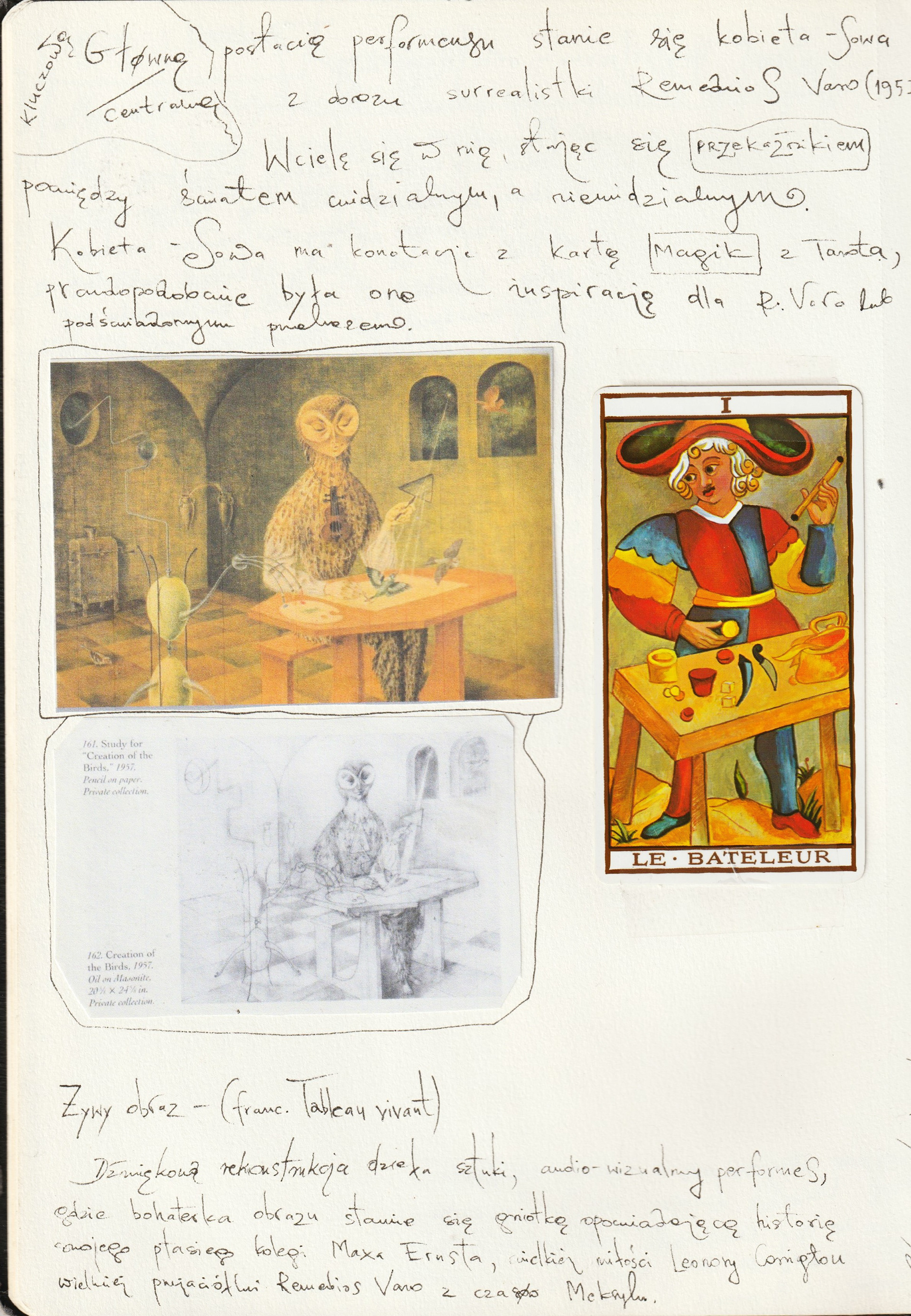 W tekście nawiązuję również do szwedzkiej grupy De Fem (Pięciu), do której należała pionierka abstrakcjonizmu Hilma af Klint. Kobiety poprzez seanse spirytystyczne łączyły się z bytami pozaziemskimi, wykonując podczas każdej sesji automatyczne rysunki i teksty. Robiły to dużo wcześniej od surrealistów, którzy nieco uzurpowali sobie automatyzm psychiczny, a Breton uczynił go definicją nurtu. Ukochane Loplopa wywołują ducha jedynej prawdziwej miłości Ernsta – jego ukochanej różowej papużki Hornebom. Ptak Przełożony zainspirował do powstania opowiadania, a opowiadanie zainicjowało powstanie filmu, w którym korzystając z archiwalnych kaset VHS mojej rodziny stwarzam swój własny ptasi mit, analogiczny do ptasiego mitu Ernsta. Moja mama nosi pod sukienką jajo, tak jak mama Maxa.
