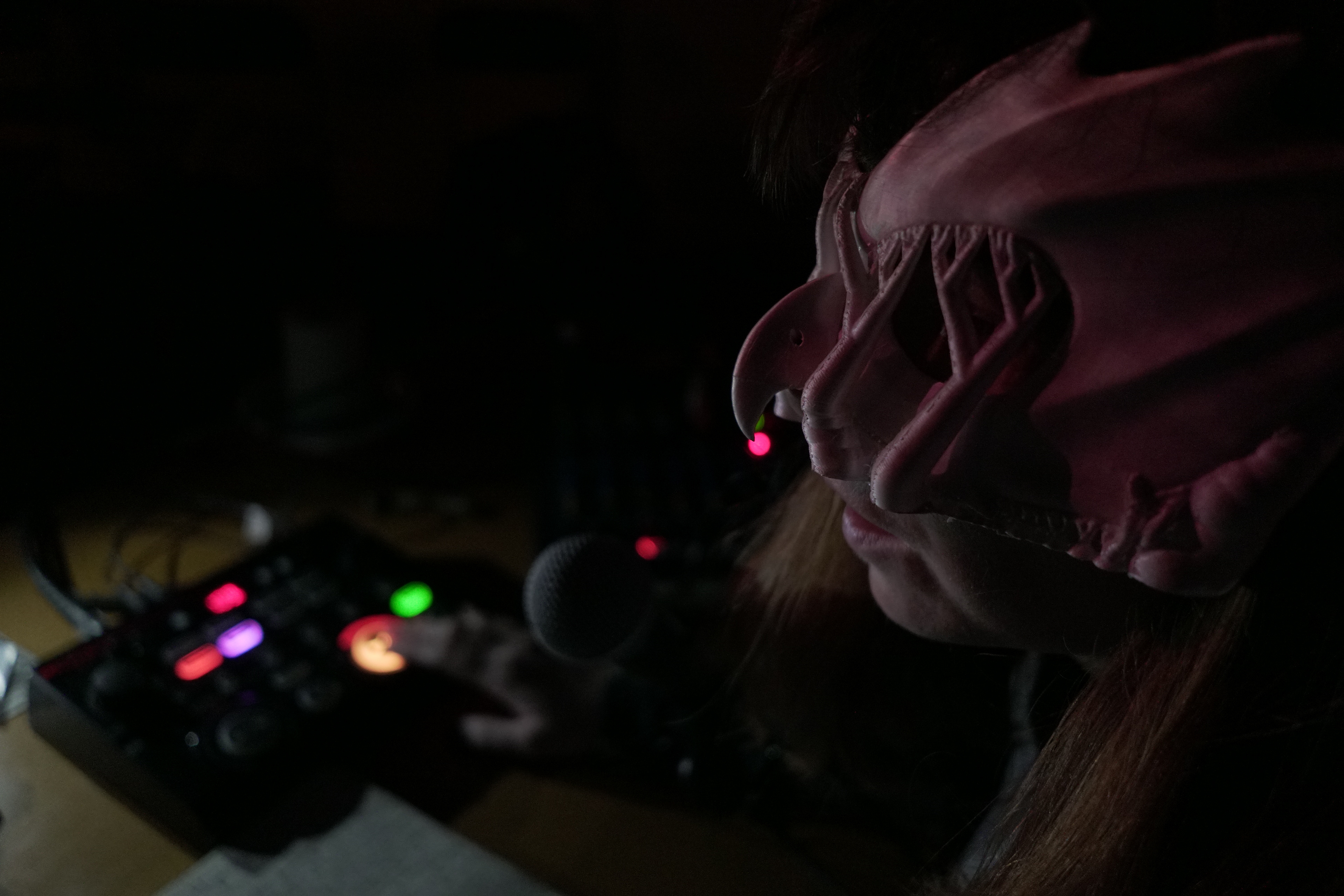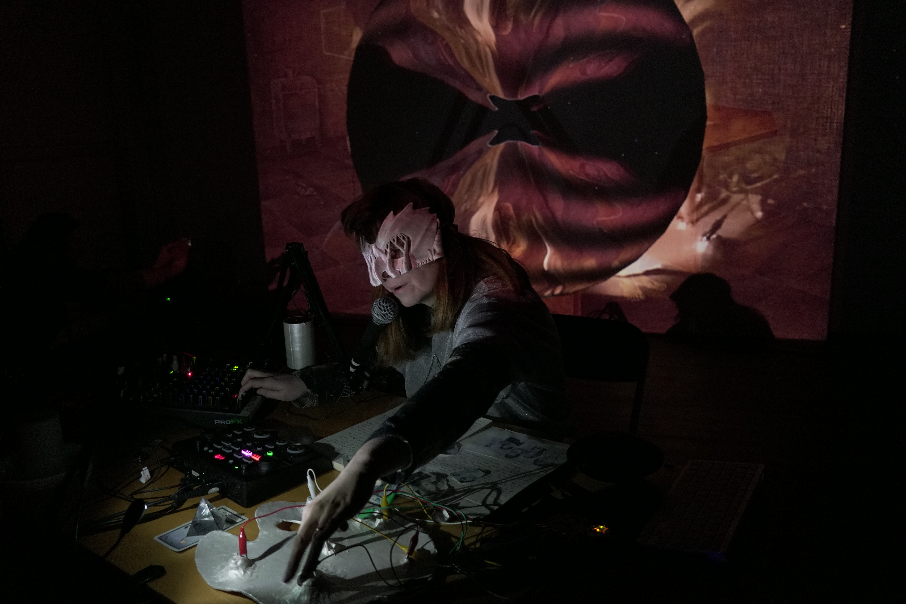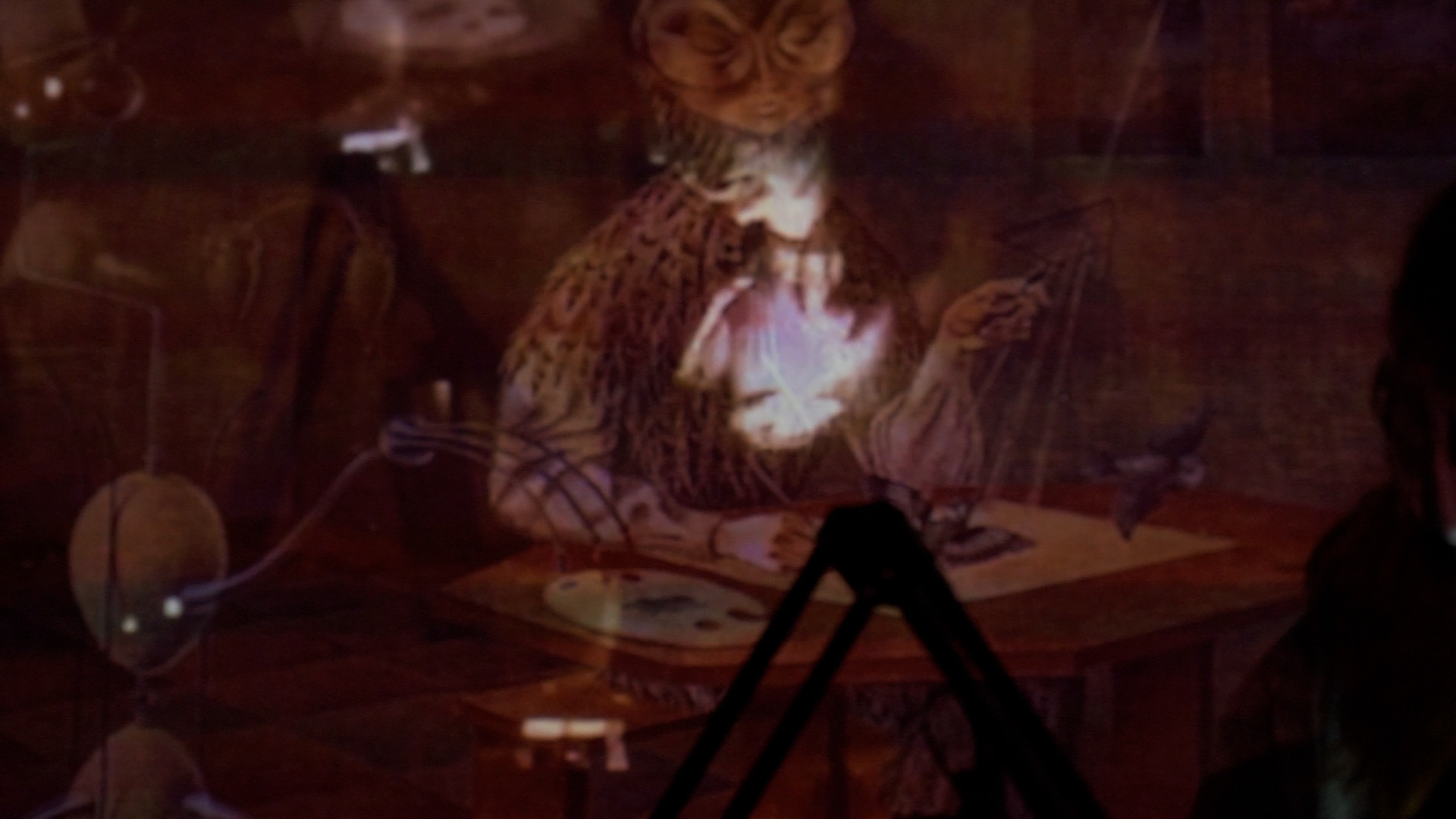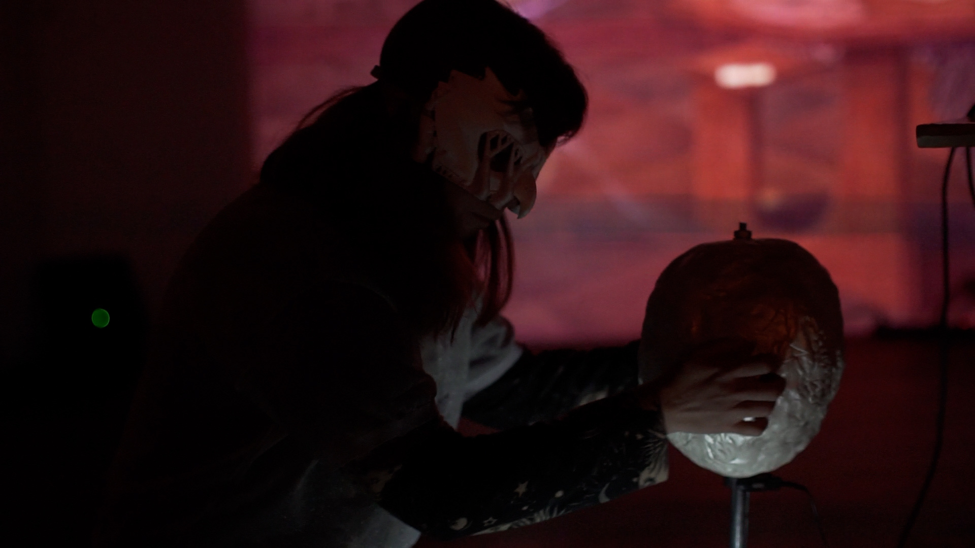 Oneironithos is a combination of the Greek words "oneiro" - dream, and "ornithos" - bird. The core of the work is a painting by the surrealist Remedios Varo, "The Creation of Birds". I embodied the Owl Woman from the artist's work, who becomes a relay between the visible and invisible world, and using her and alchemical objects from the painting , I create an audio-visual performance. With my own story, my voice and sounds, I present the bird myth of the surrealist Max Ernst, who believed that he hatched from an egg, and using my family VHS recordings, I created an analogous myth of my own birth.